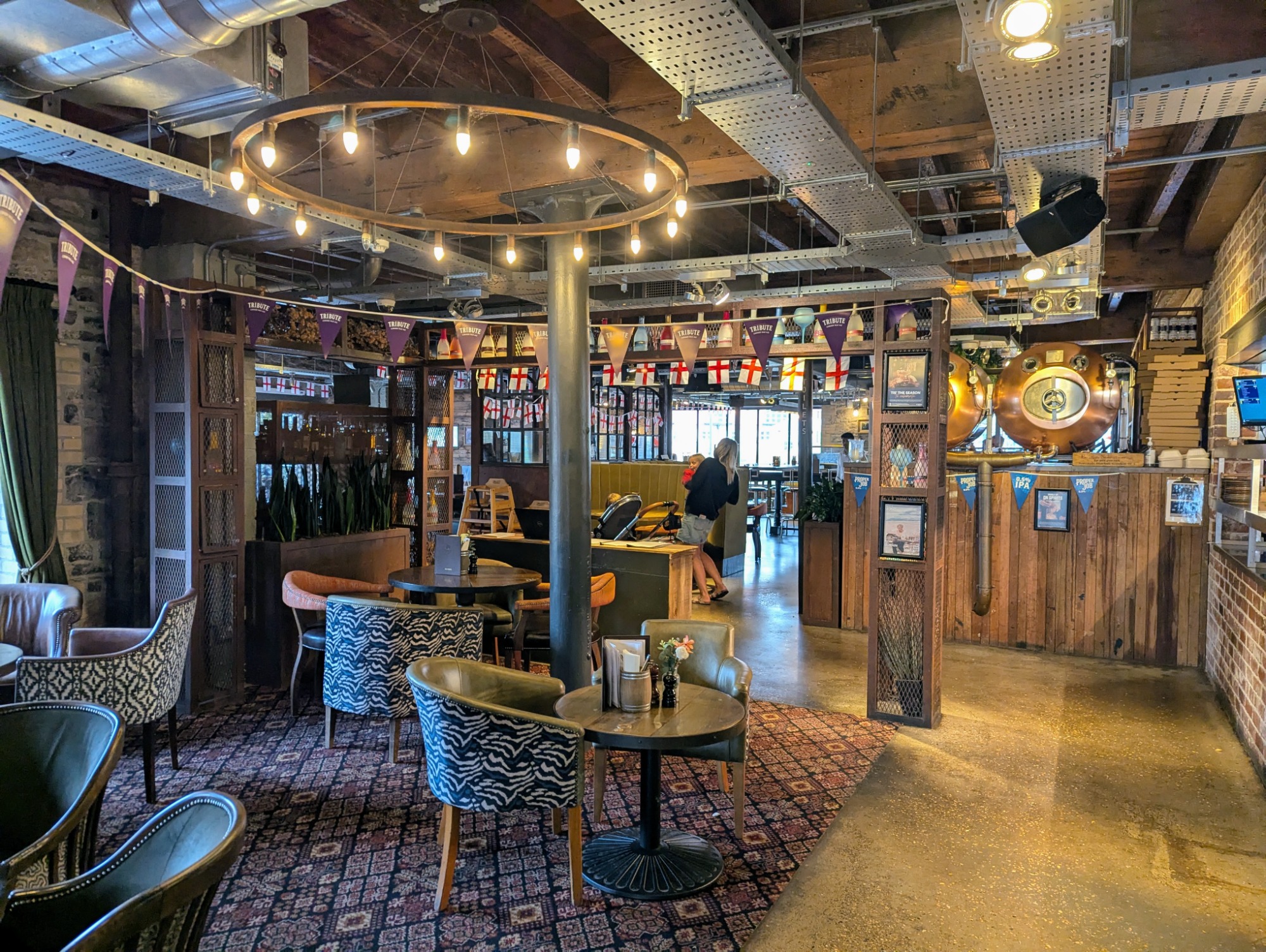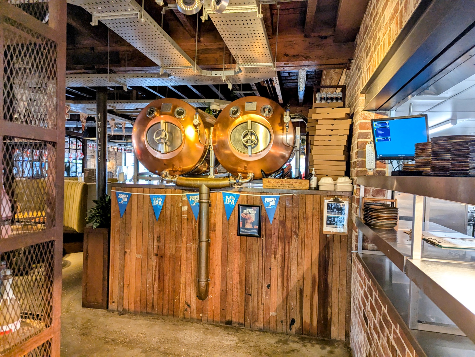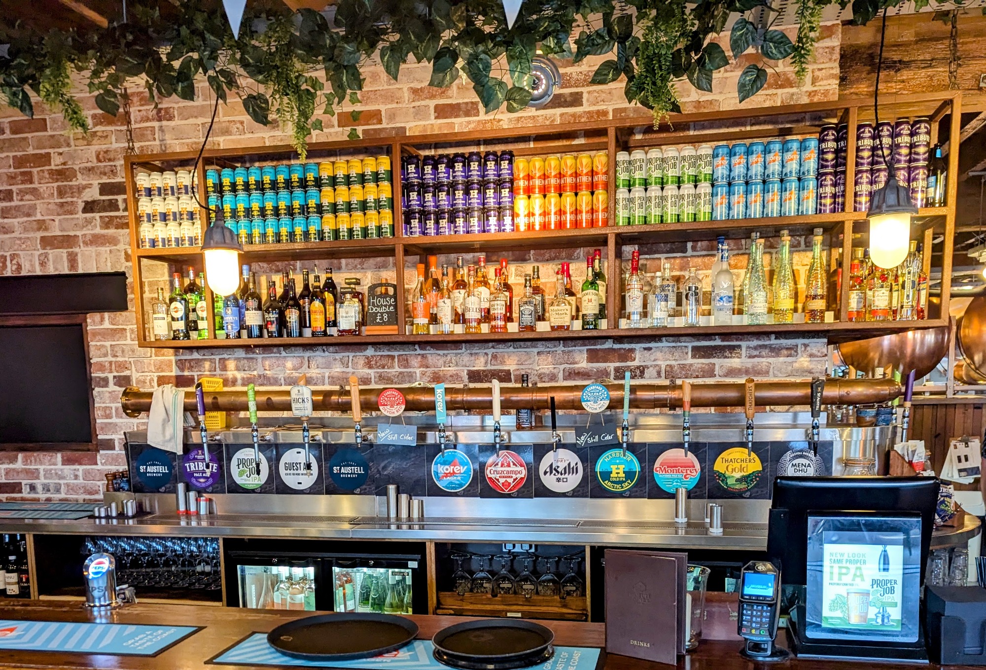 This fantastic pub is a beautifully converted 19th-century warehouse that perfectly blends historical charm with a modern, industrial-chic design. The moment you step inside, you're greeted by a trendy, vibrant space that makes you feel right at home. One of the most unique details is the tap system, where the pumps are cleverly disguised as the beer labels on boxes behind the bar, adding to the distinctive, stylish decor.