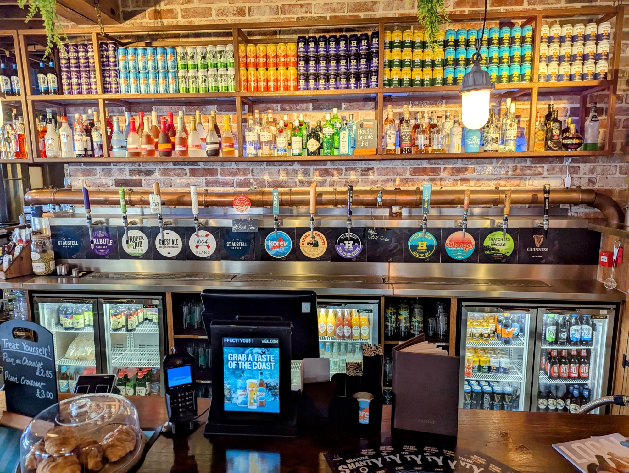 Excellent selection of beers on tap—including the delicious Monterey Pale Ale and a Harbour Big Wednesday—we headed to the truly stunning terrace. It was a beautiful, sunny day, and the terrace was the perfect setting, offering amazing views that overlook the River Exe. Sitting there was pure bliss, a wonderfully peaceful escape from the everyday hustle and bustle.
